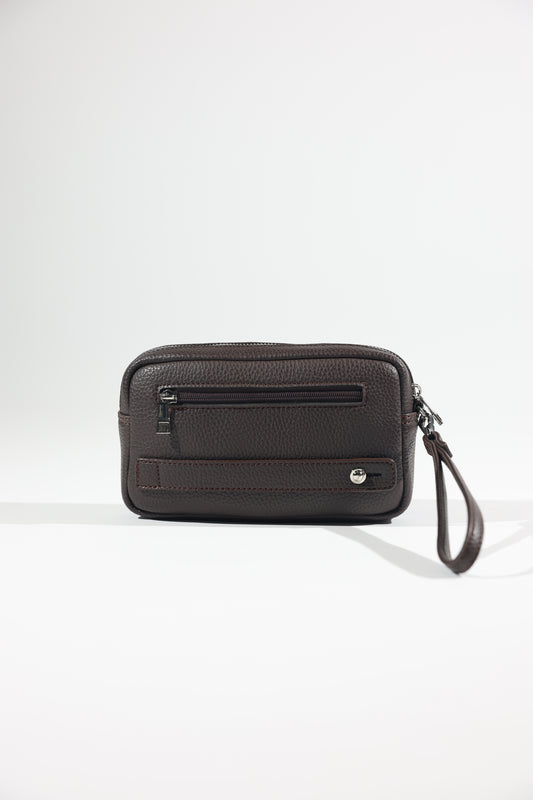 Gray Hakiki Deri Mıknatıslı Taba El Çantası