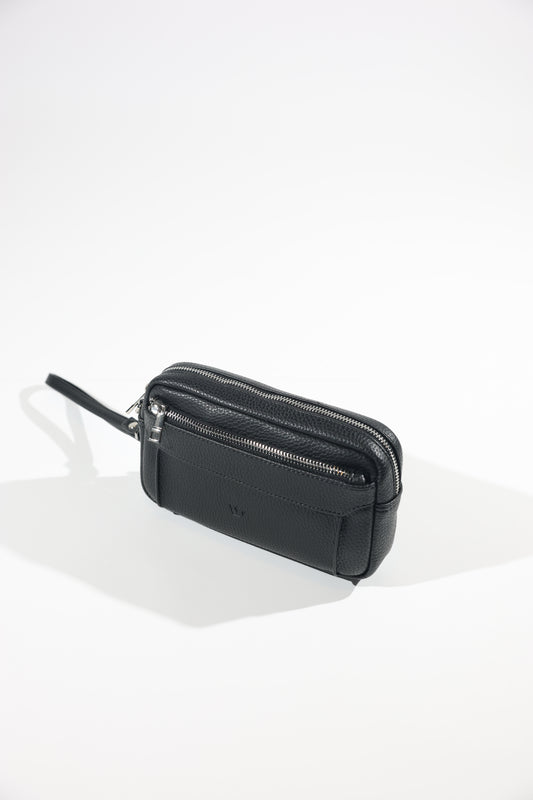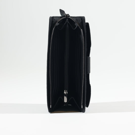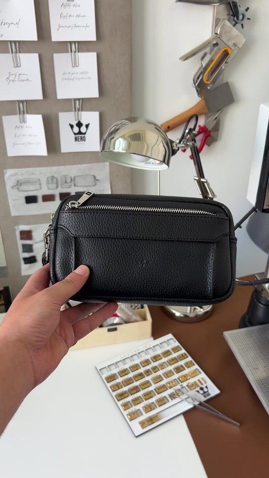 Gray Hakiki Deri Mıknatıslı Siyah El Çantası
