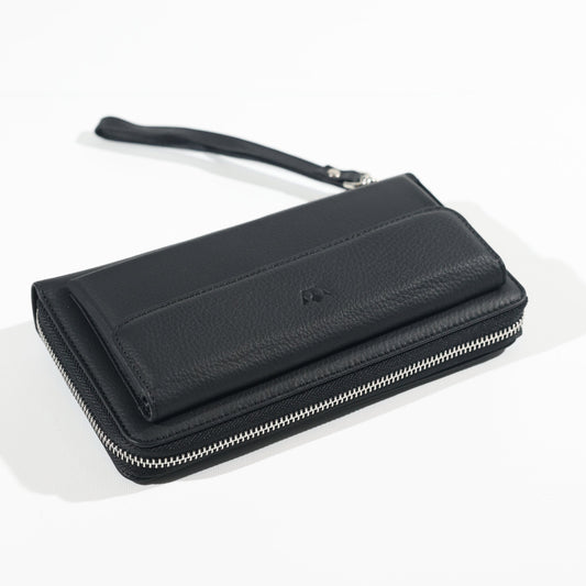 Leo Siyah Hakiki Deri Telefon Bölmeli Cüzdan