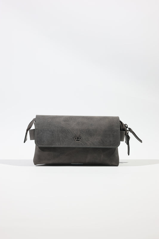Gray Hakiki Deri Mıknatıslı Taba El Çantası