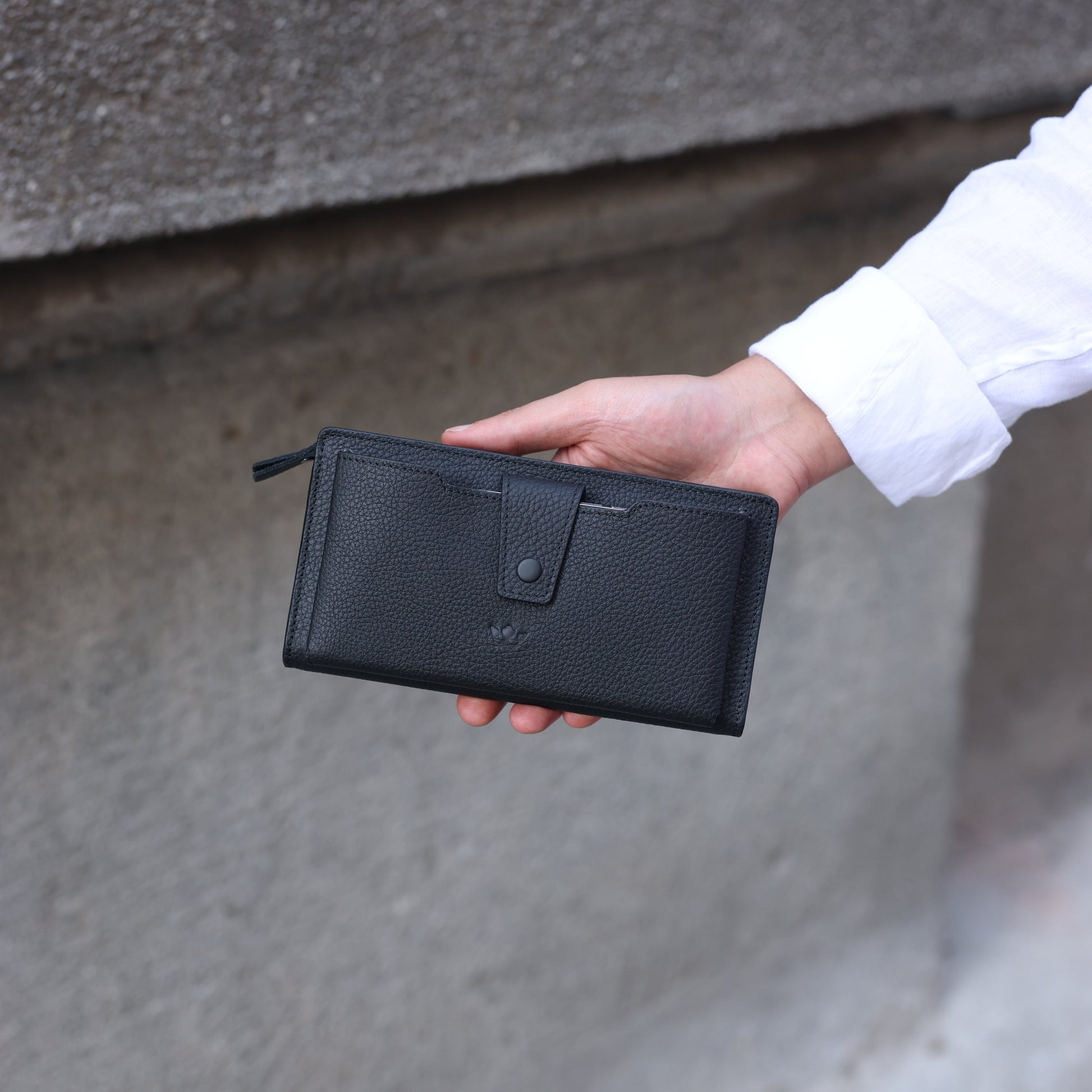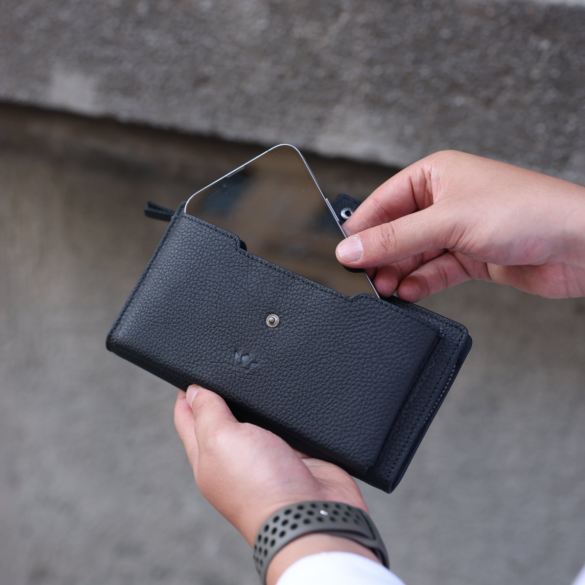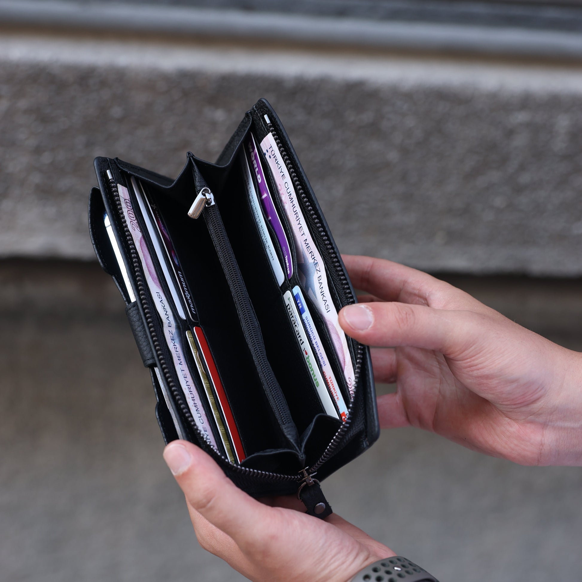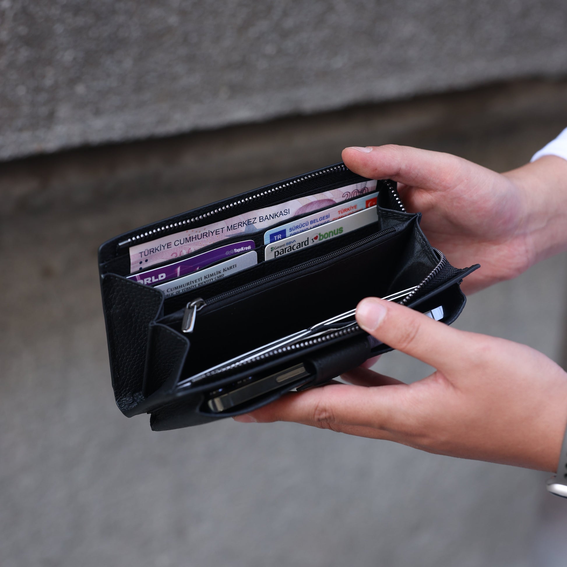 Marlo Siyah Hakiki Deri Telefon Bölmeli Cüzdan