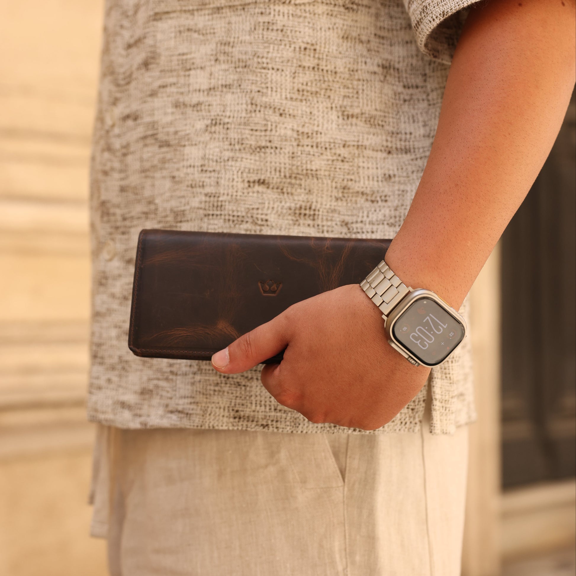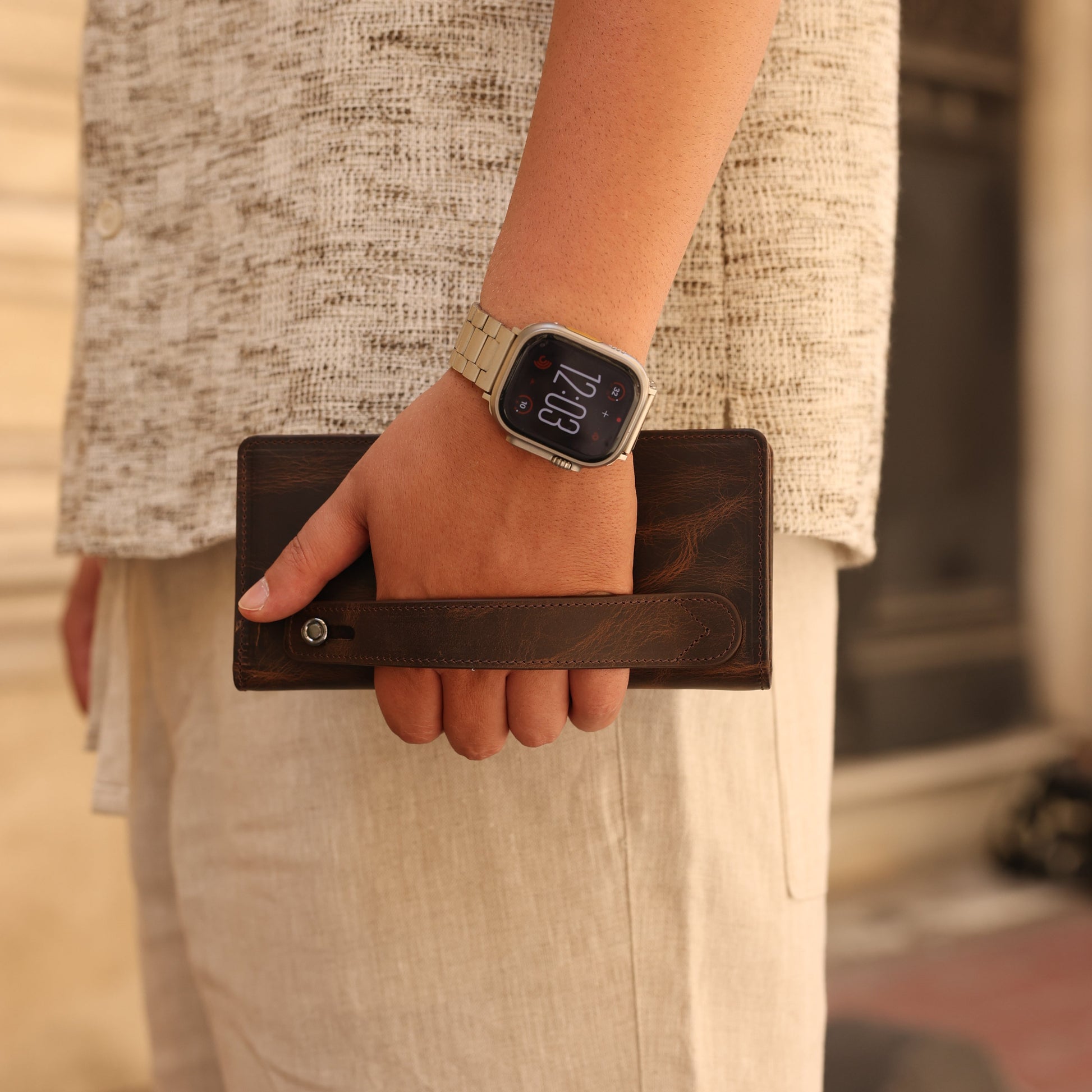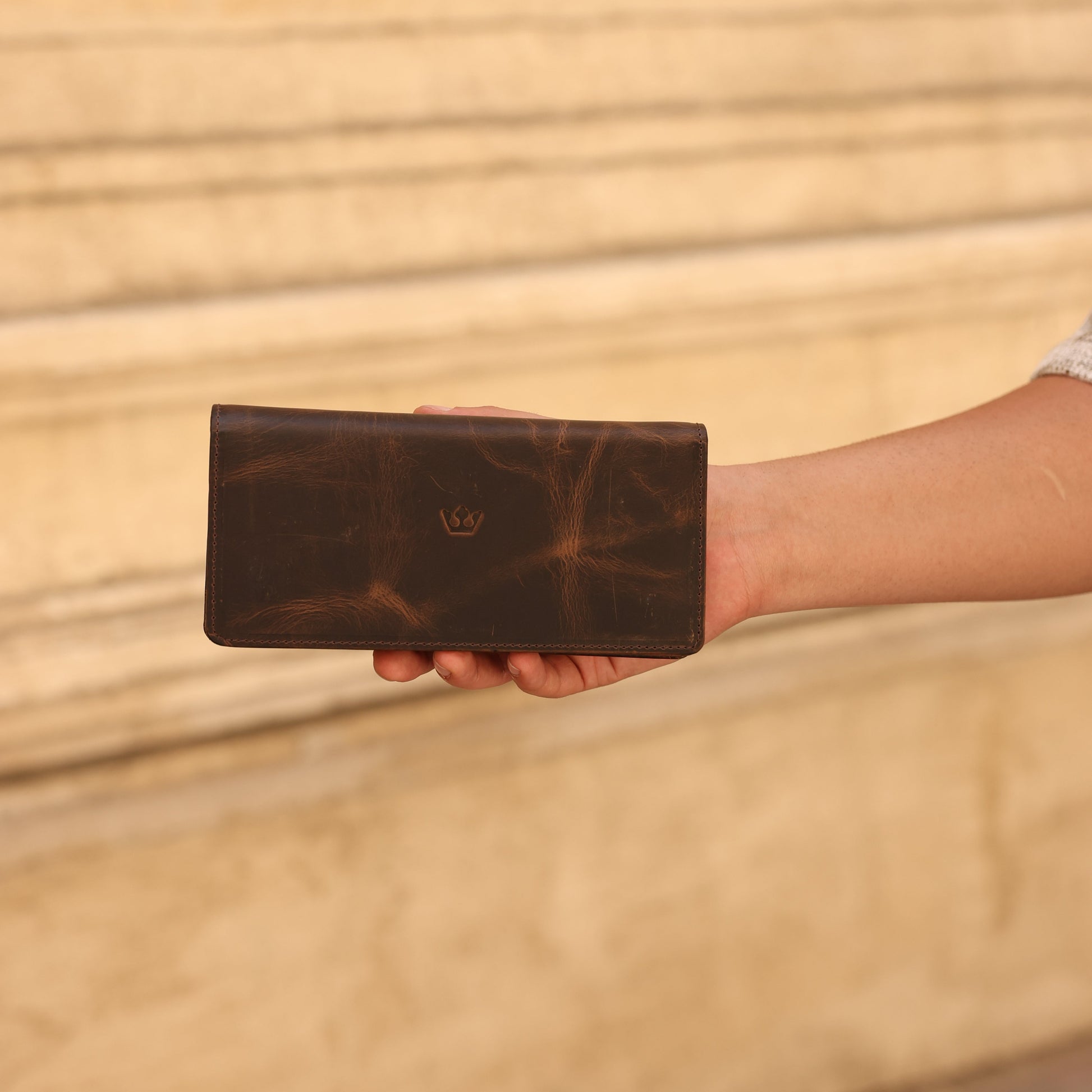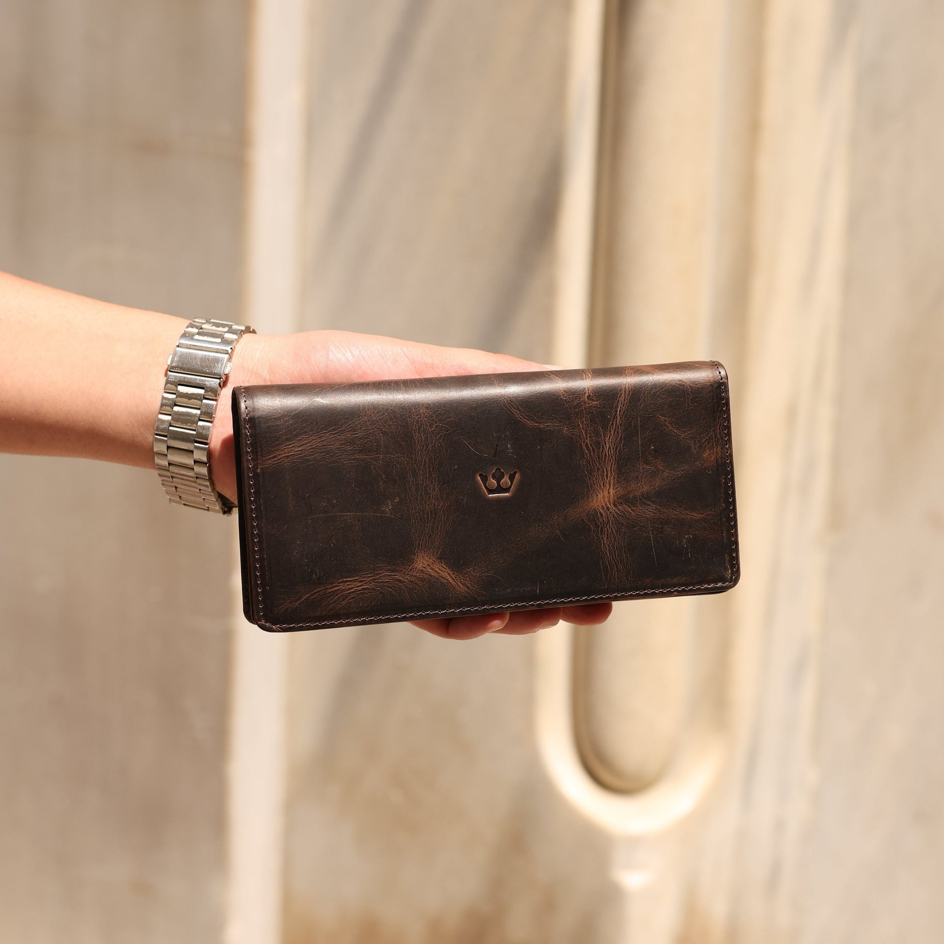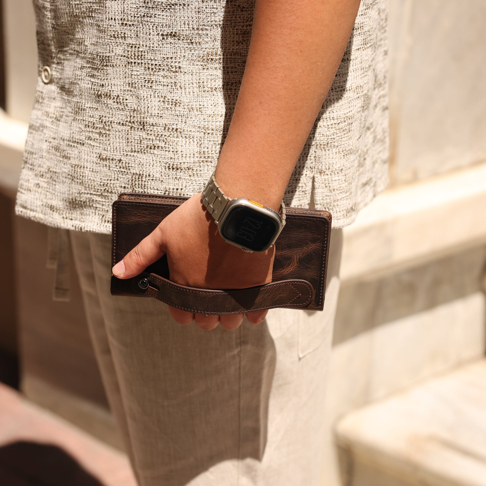 Zoe Kahverengi Hakiki Deri Kayışlı Telefon Bölmeli Cüzdan