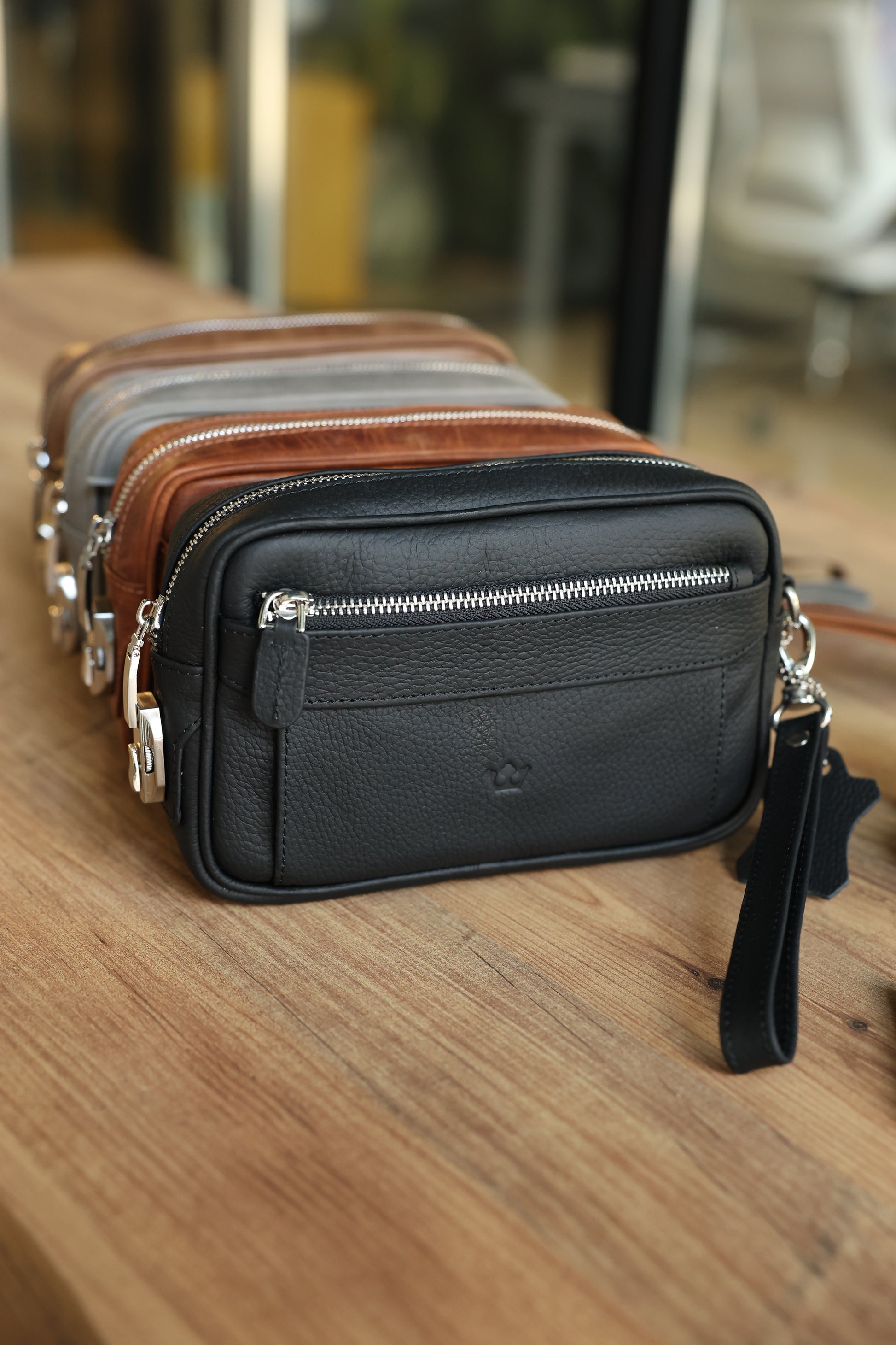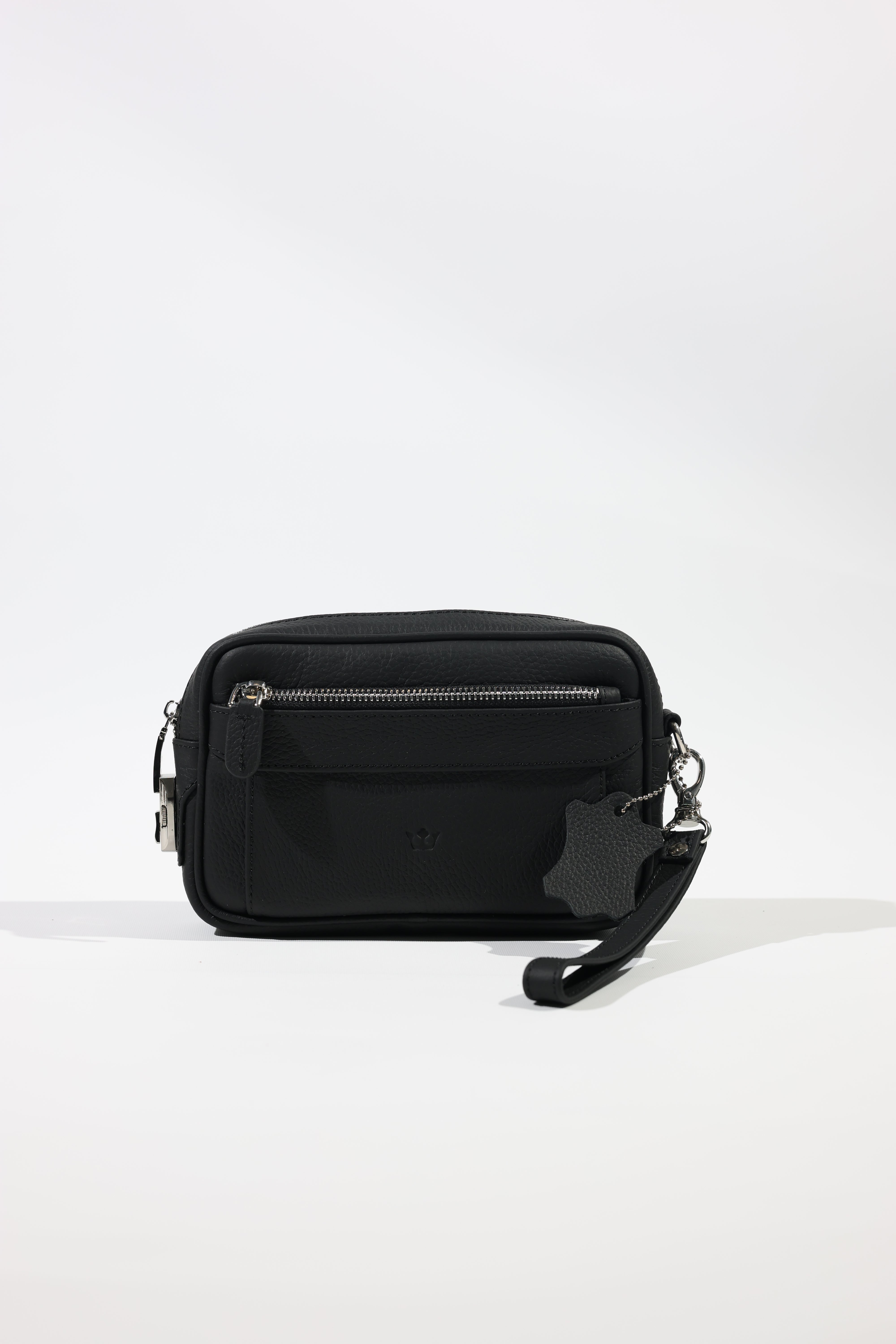 Bond Hakiki Deri Kilitli Siyah El Çantası