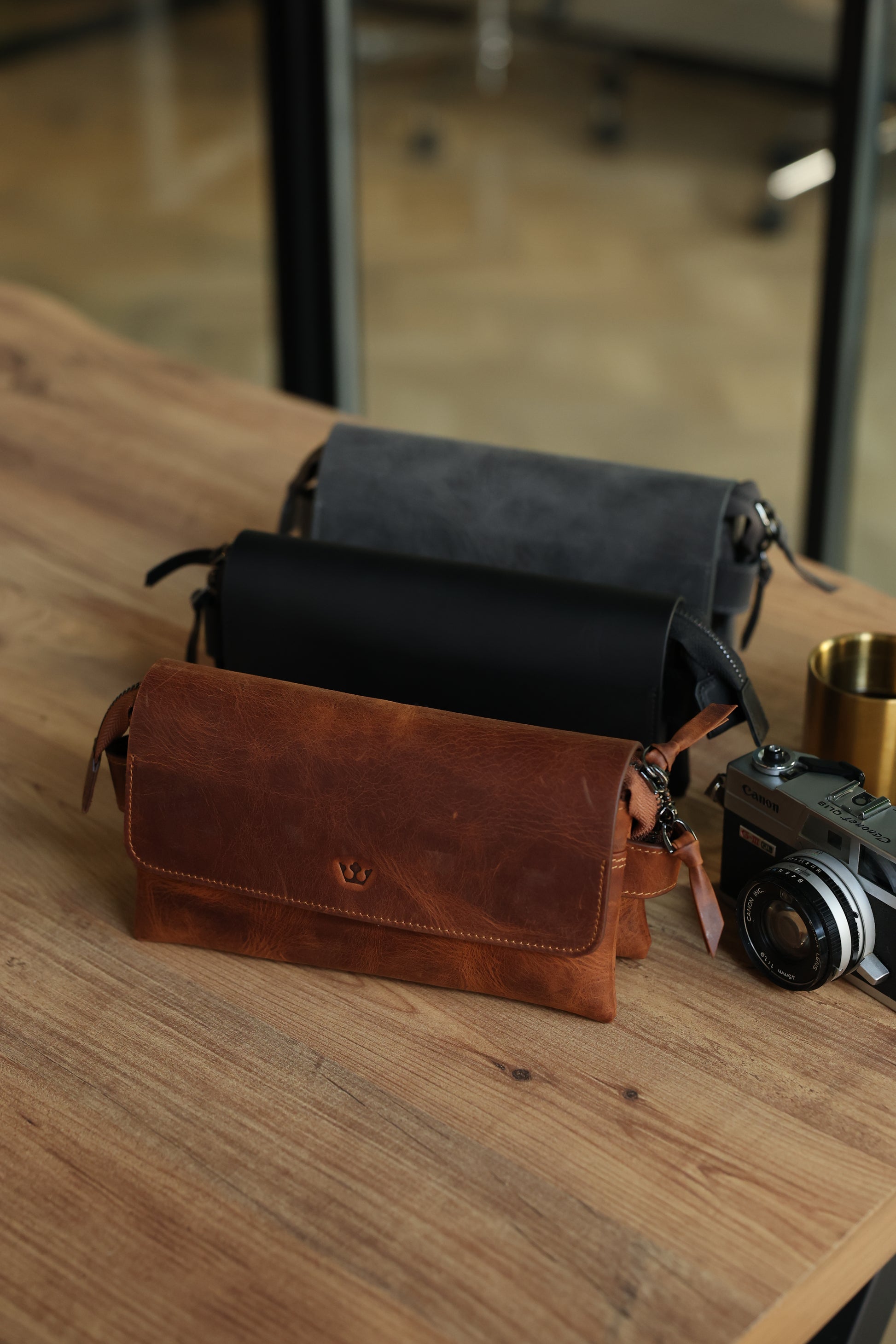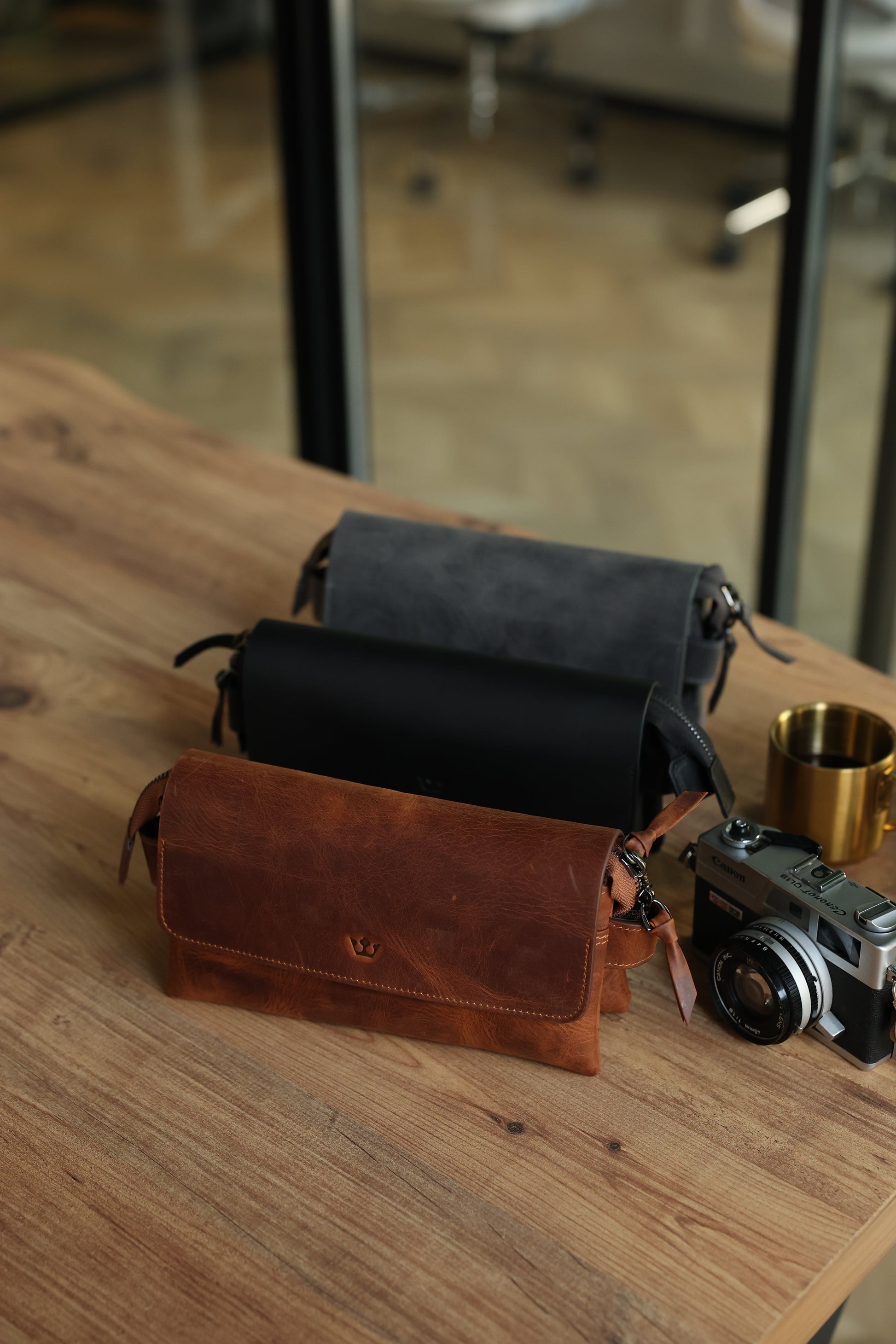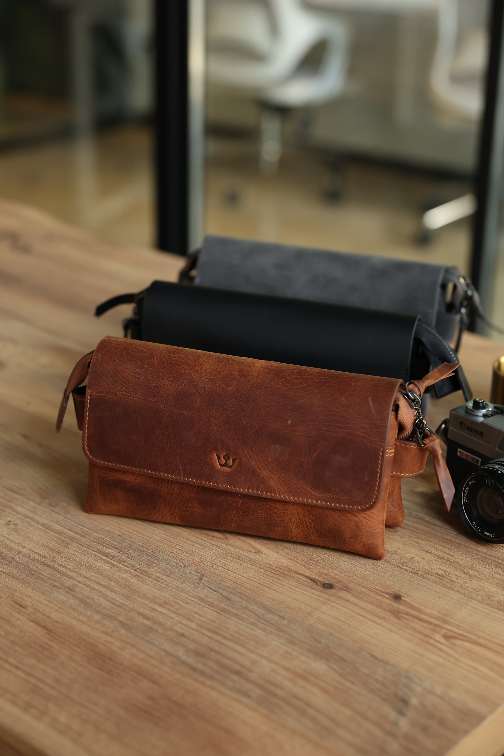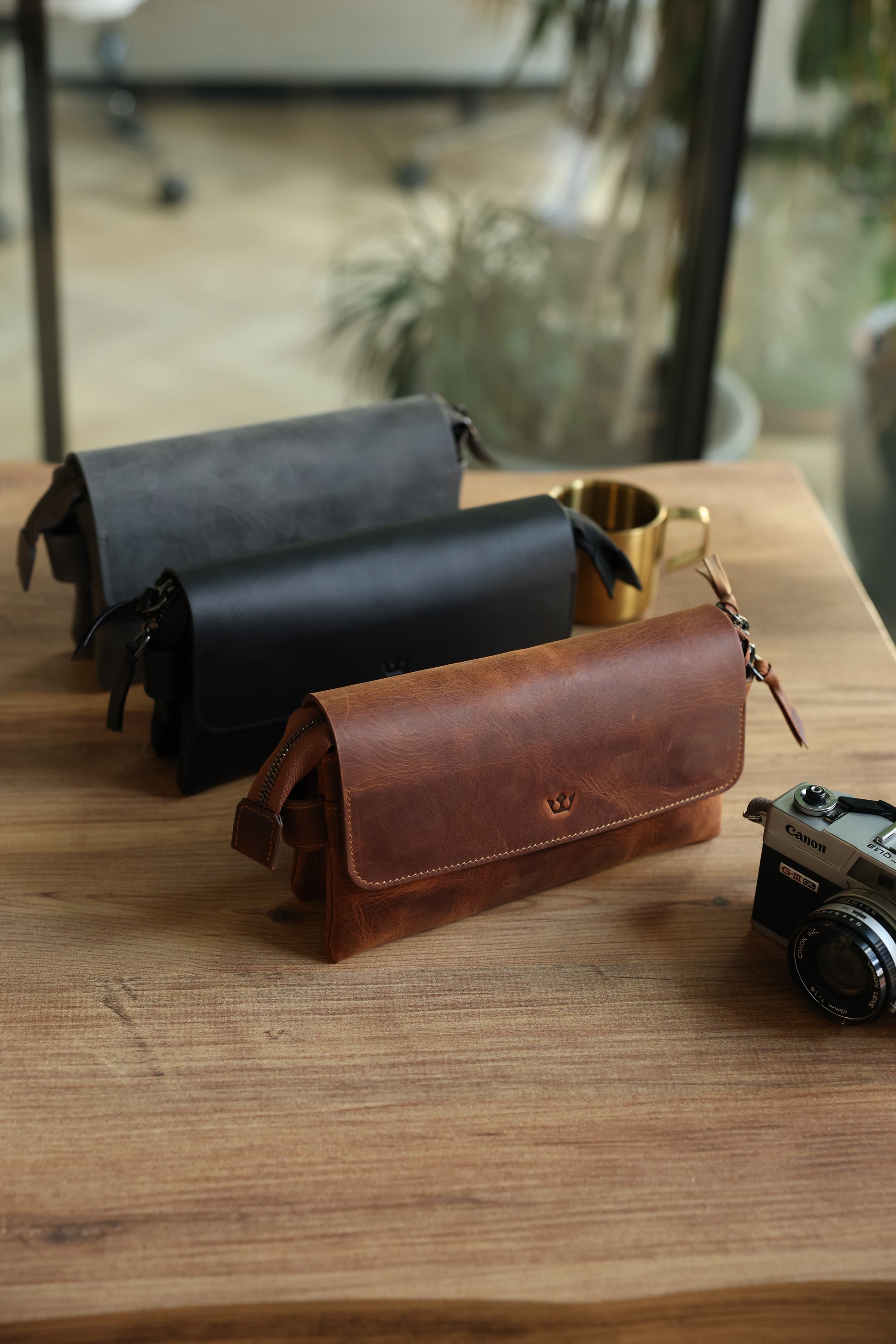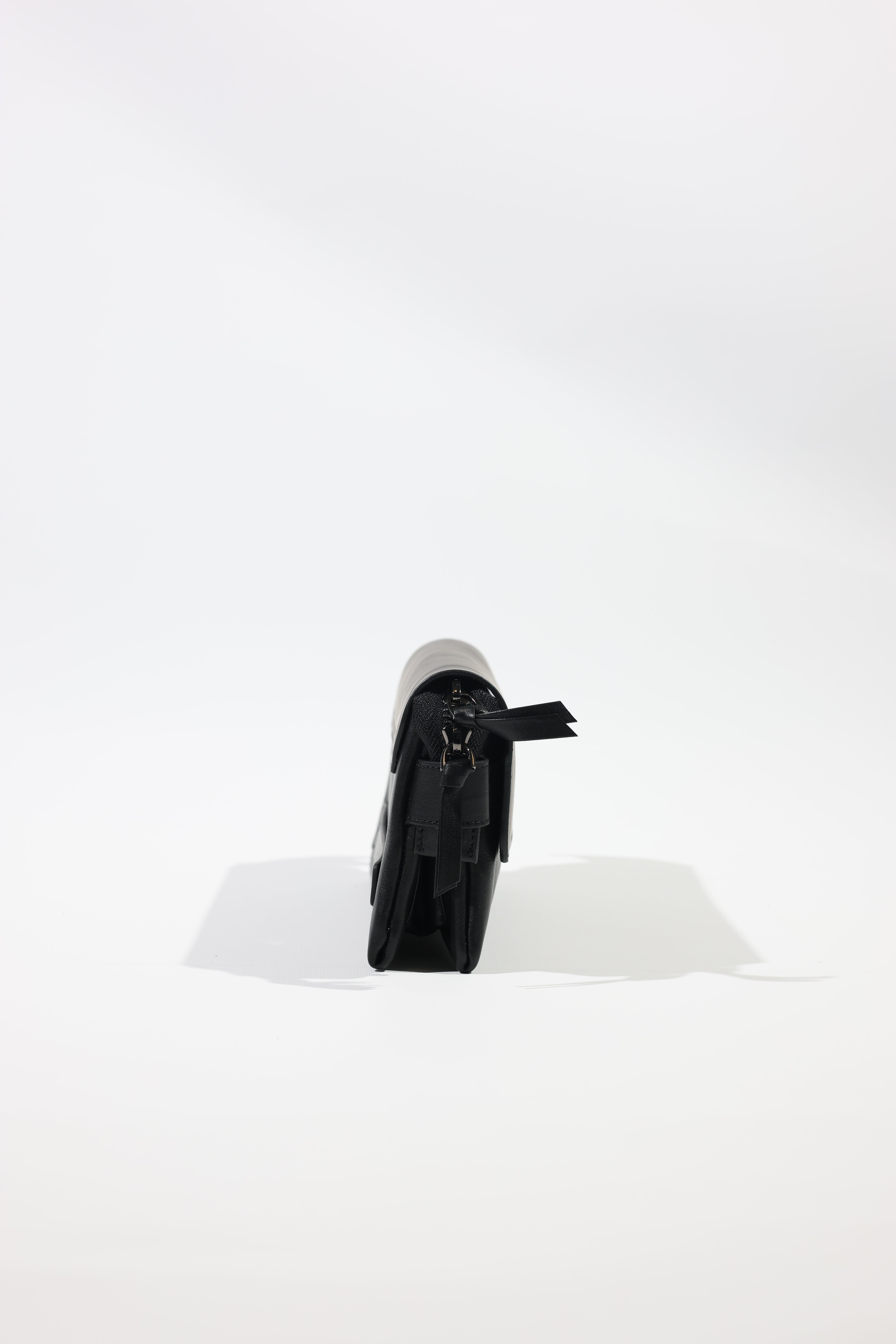 Gray Hakiki Deri Mıknatıslı Siyah El Çantası