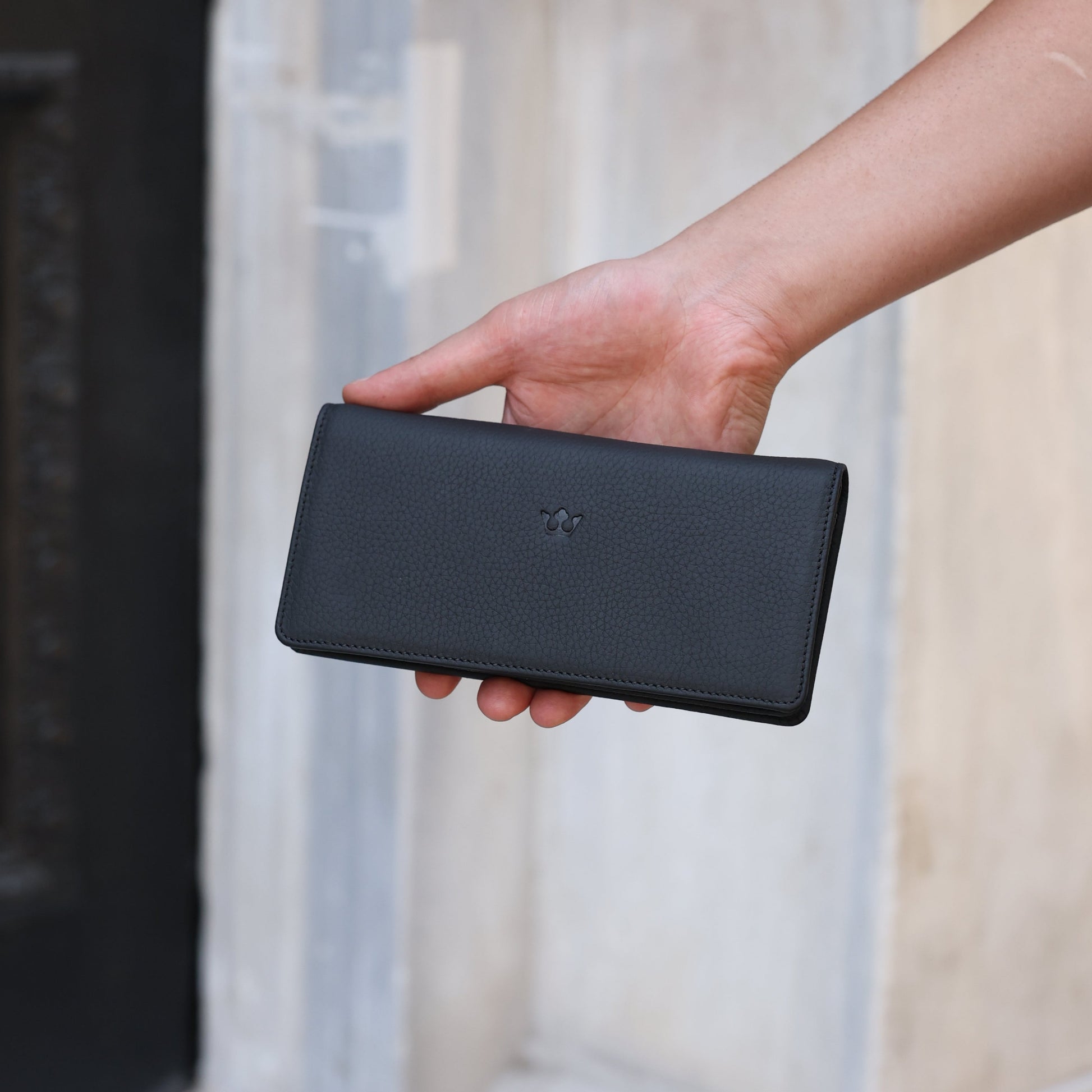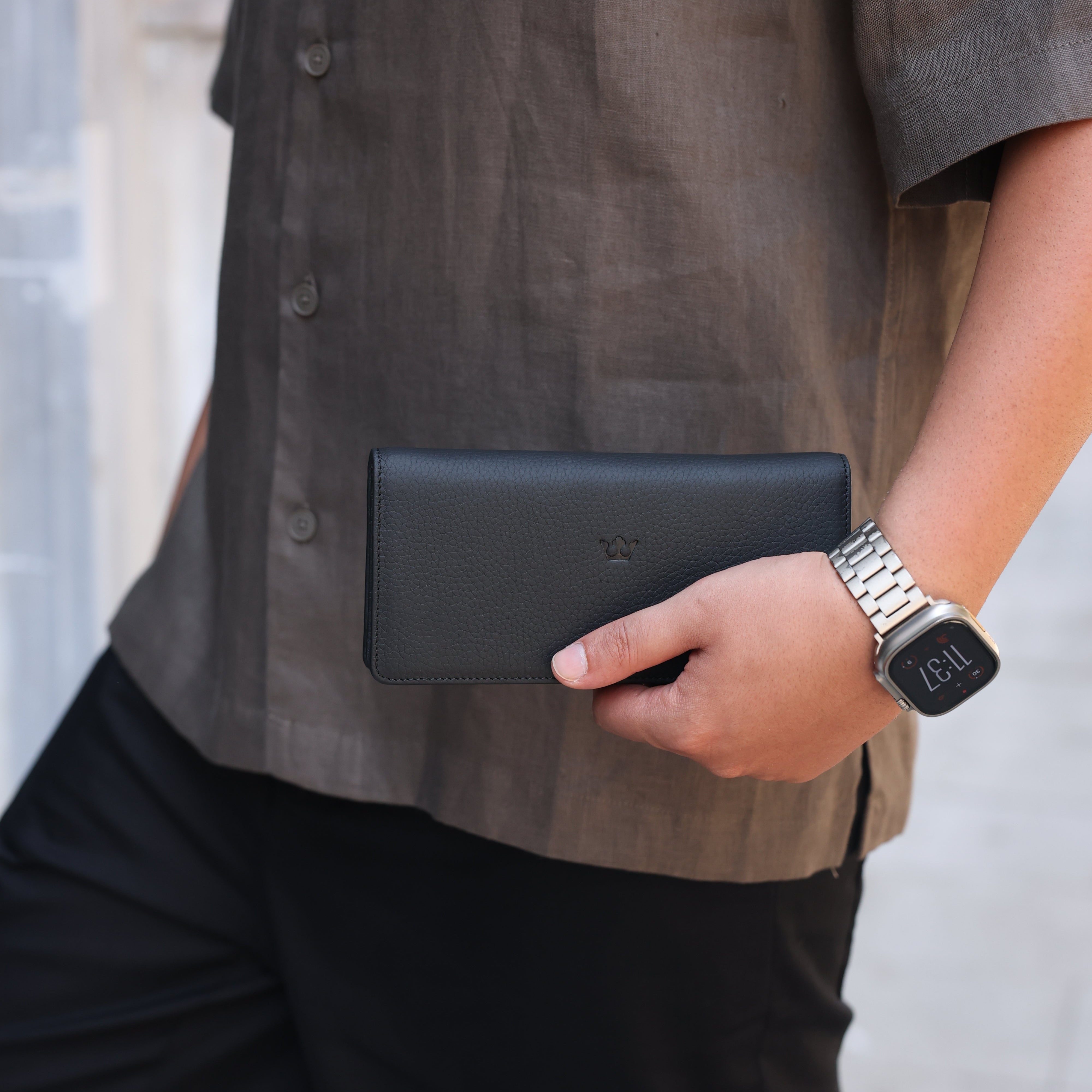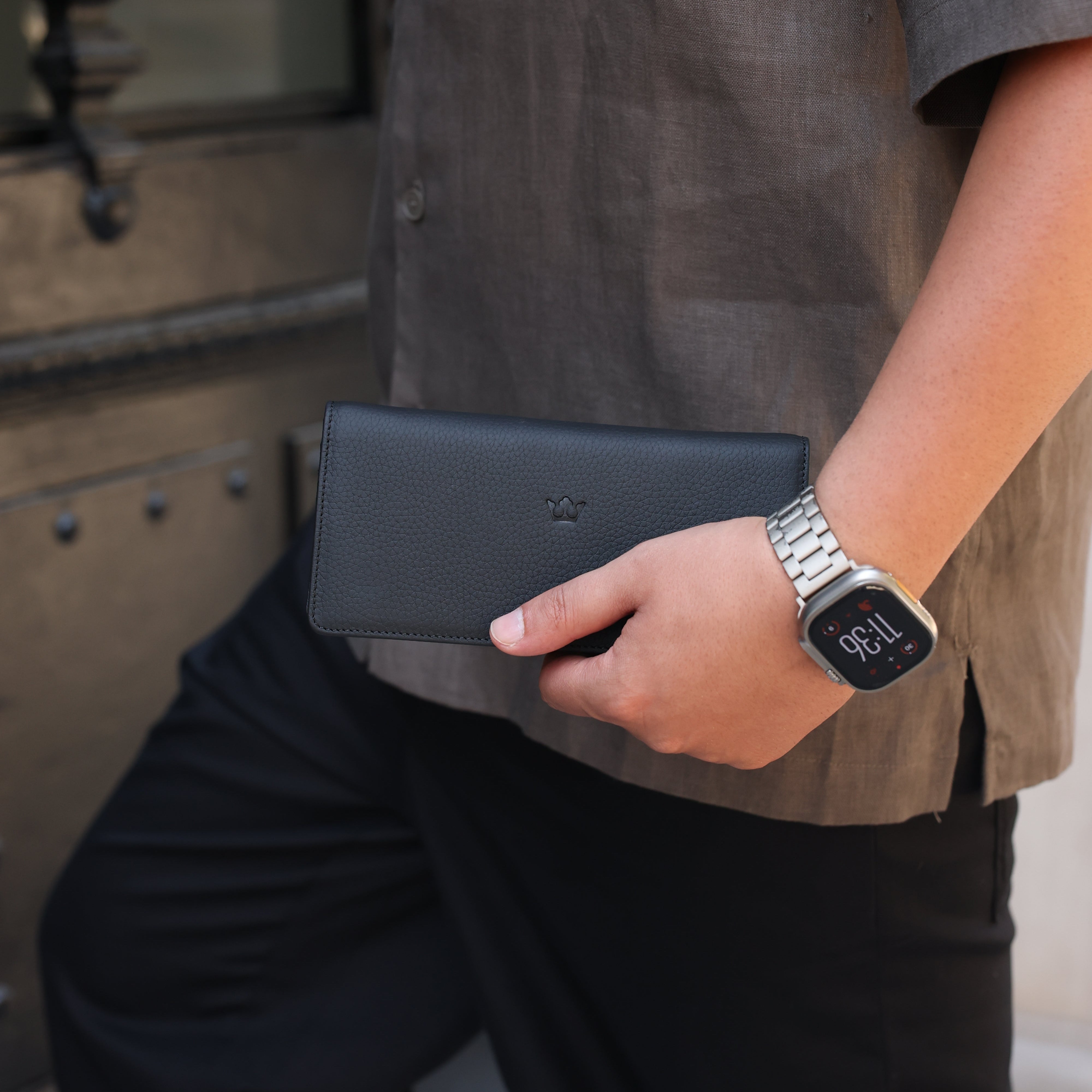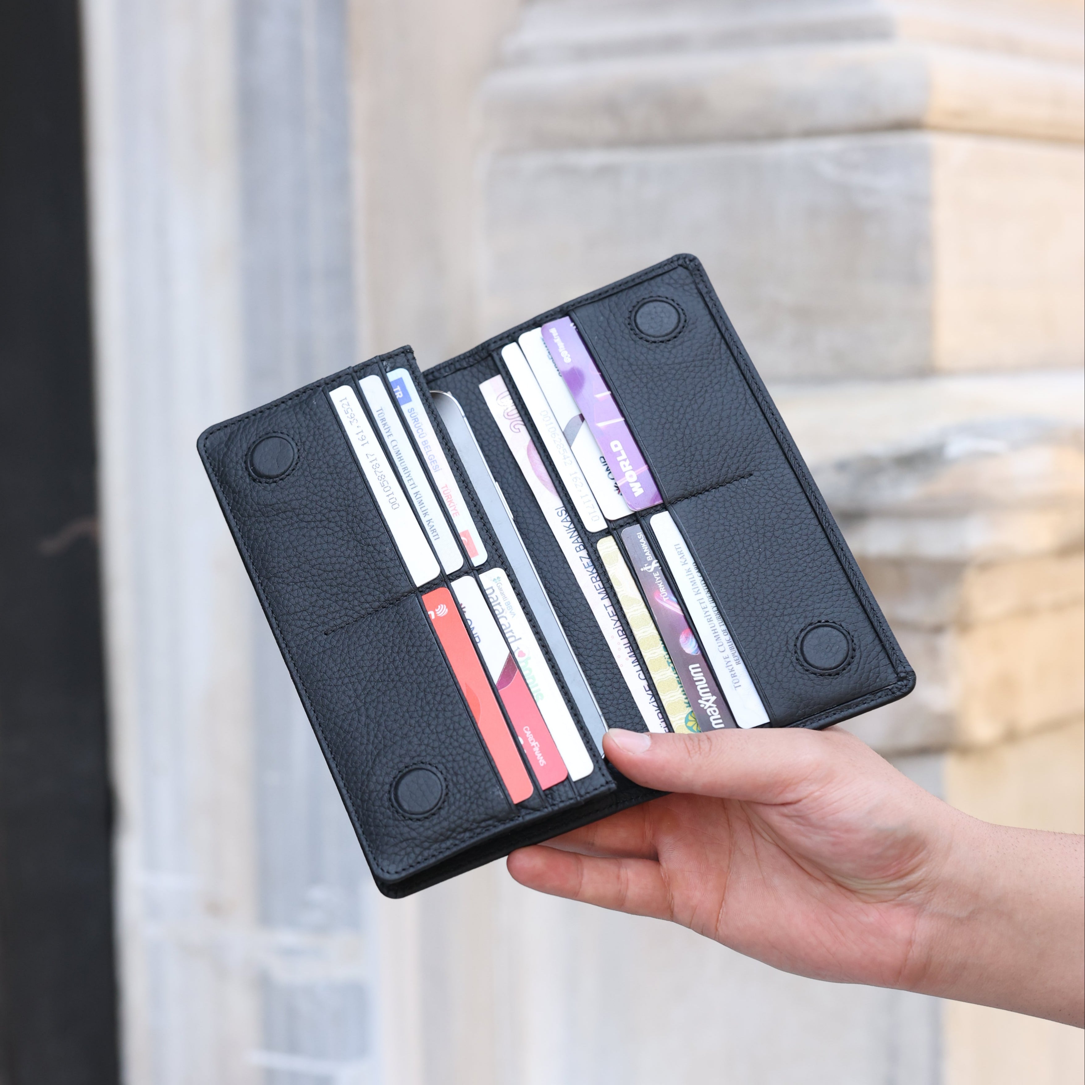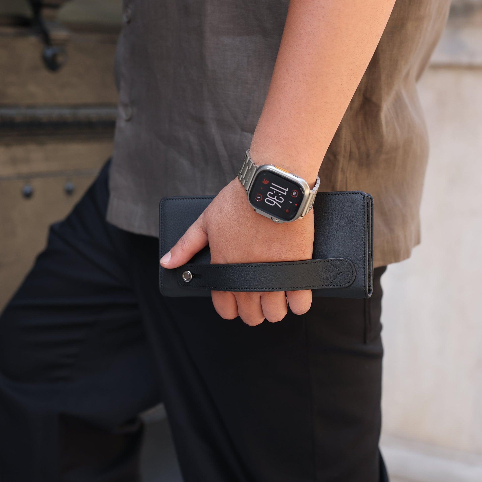 Zoe Siyah Hakiki Deri Kayışlı Telefon Bölmeli Cüzdan